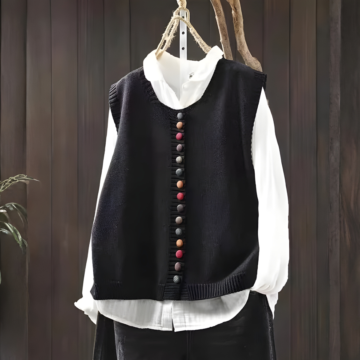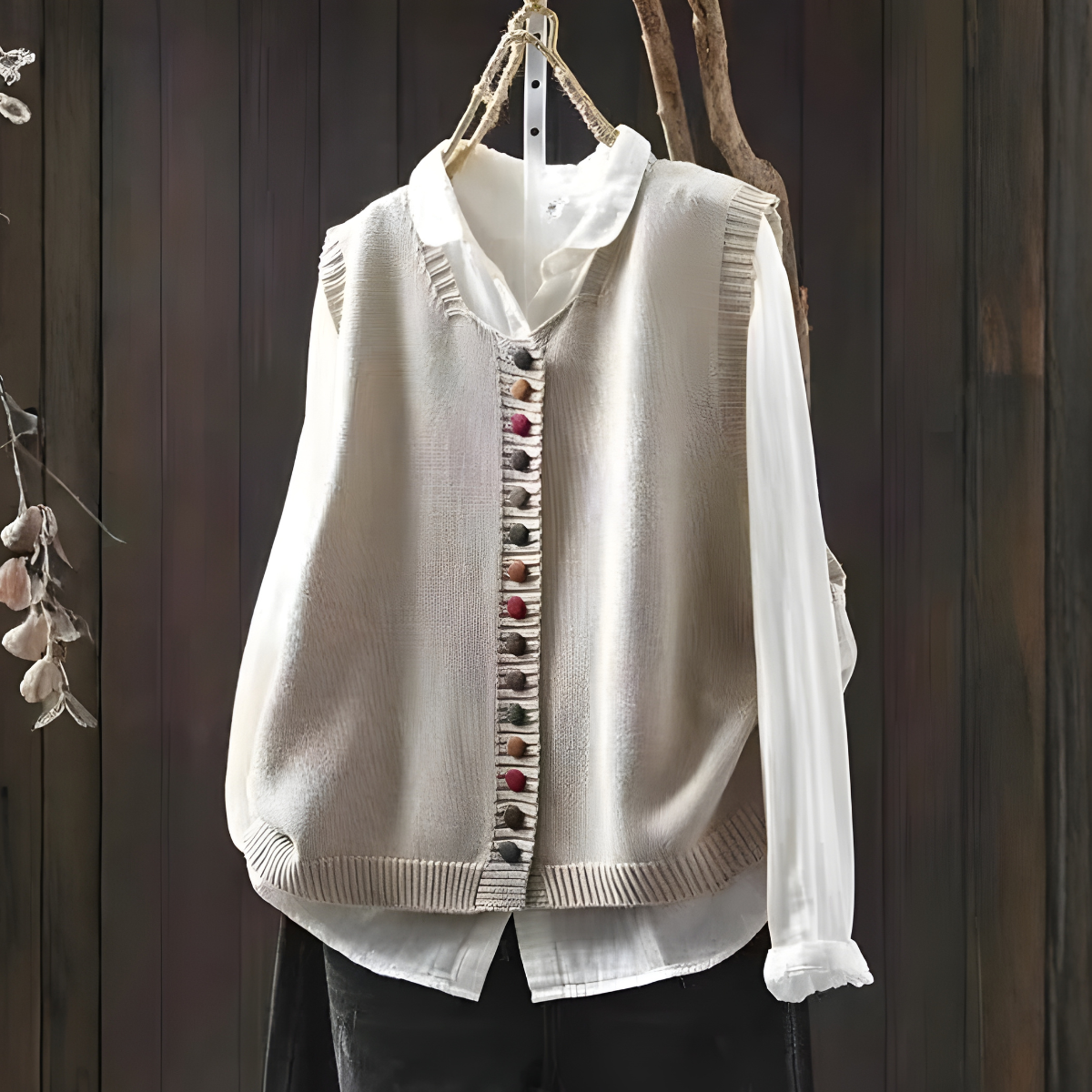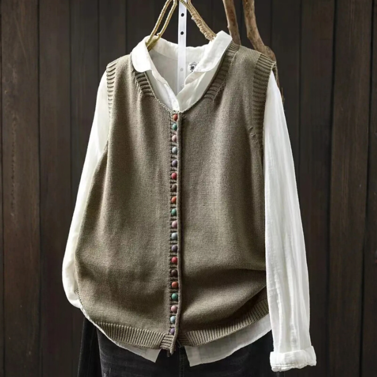 • Charmantes Detail: Die dekorative Knopfleiste und der Kontraststrick vermitteln ein einzigartiges, handgefertigtes Gefühl.