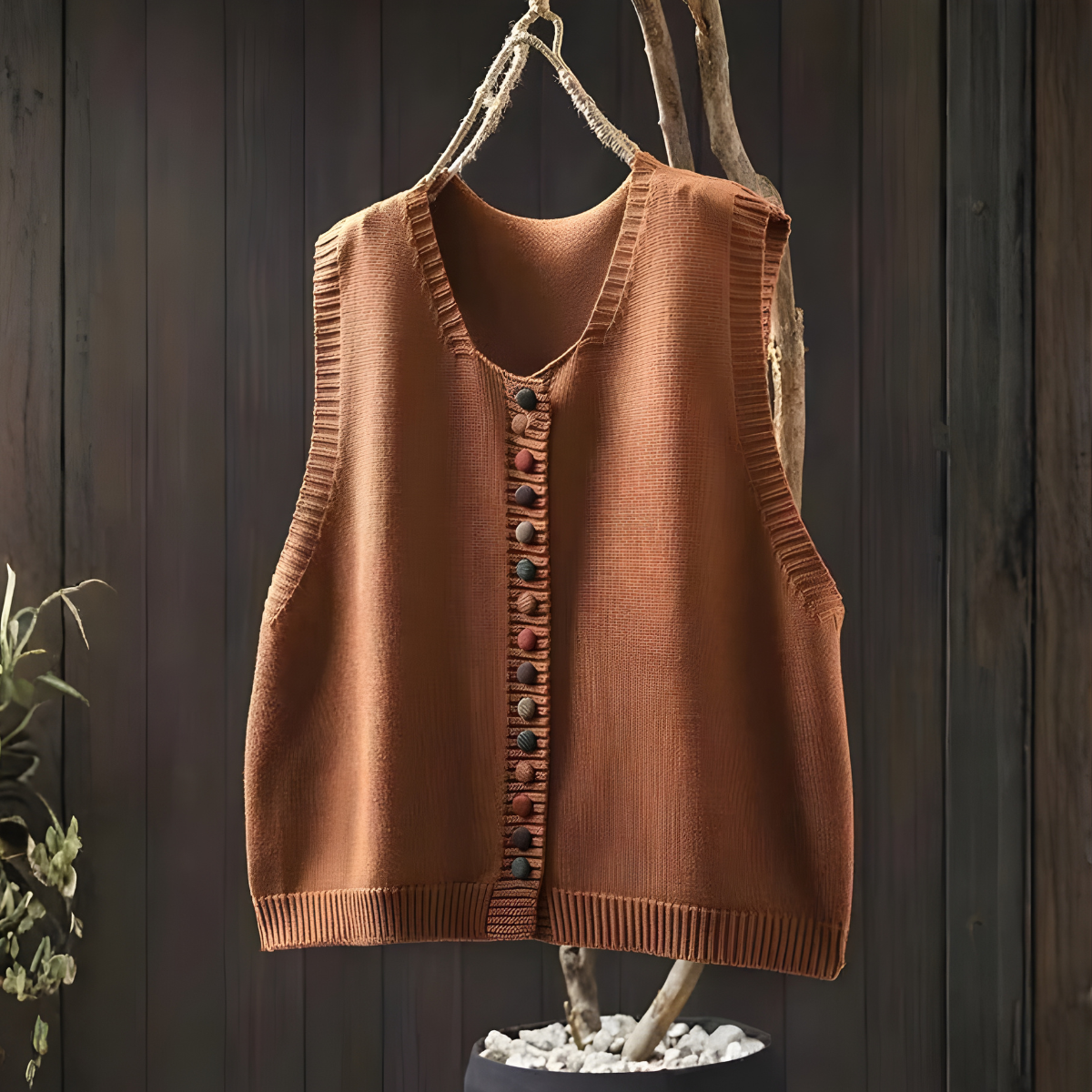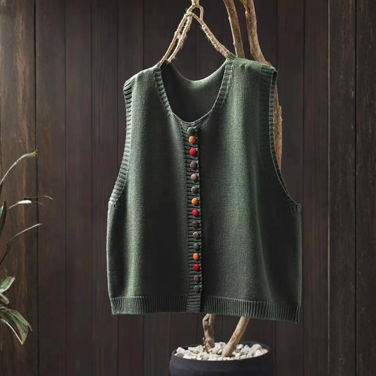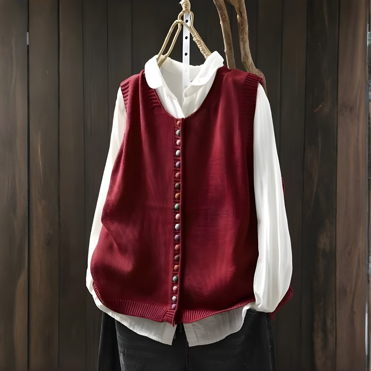 • Charmantes Detail: Die dekorative Knopfleiste und der Kontraststrick vermitteln ein einzigartiges, handgefertigtes Gefühl.