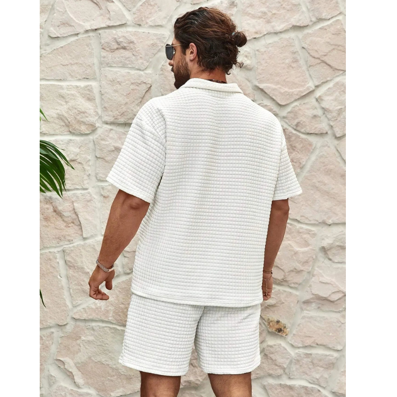 Halb-Reißverschluss Hemd und Shorts Set für Herren