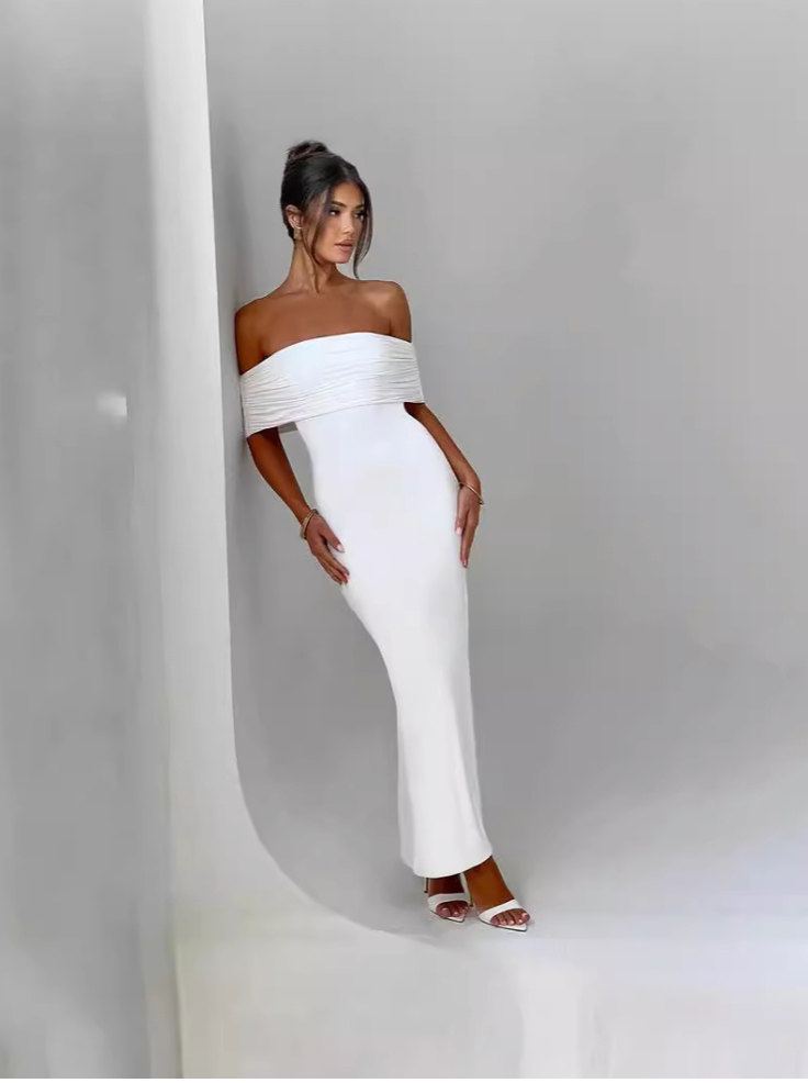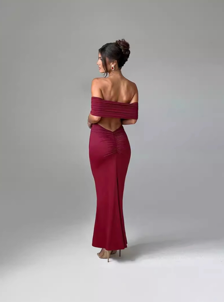Ob romantisches Dinner oder glamouröser Mädelsabend – mit NANDA werden Sie zum unbestrittenen Highlight. Der schmeichelhafte, eng anliegende Stoff betont jede Kurve, während das off-the-shoulder Dekolleté im Bardot-Stil verspielte Eleganz verleiht. Der tiefe Rückenausschnitt mit Raffungen setzt ein verführerisches Statement. Dank doppellagigem Material ist das Kleid diskret undunwiderstehlich zugleich. Einfach mit nacktfarbenen High Heels und Goldschmuck kombinieren – und Sie sind bereit für jeden Auftritt.