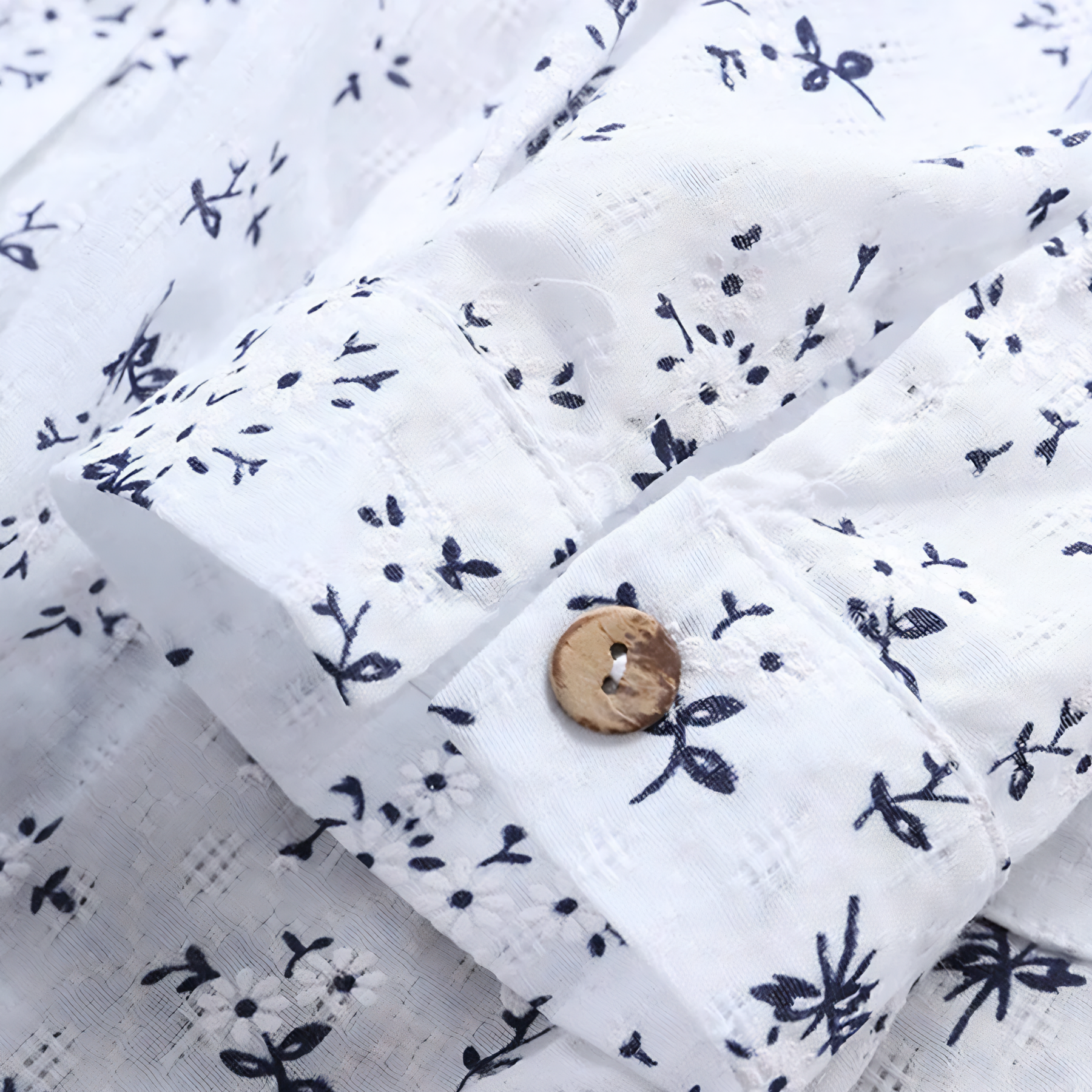 - Zartes Blumenmuster – Ein femininer Print, der an warme Sommertage erinnert und deinem Look sofort Leichtigkeit verleiht.