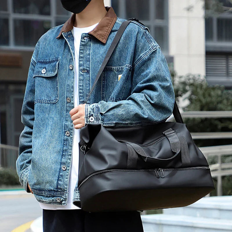 Diese vielseitige Sporttasche ist ideal für Yoga, Fitness und Training. Sie bietet nicht nur ausreichend Platz für Ihre Sportausrüstung, sondern überzeugt auch durch ihr wasserdichtes Material, das Ihre Sachen bei jedem Wetter schützt. Mit einem speziellen Schuhfach ausgestattet, ist sie perfekt für den Einsatz im Fitnessstudio oder für Wochenendausflüge.